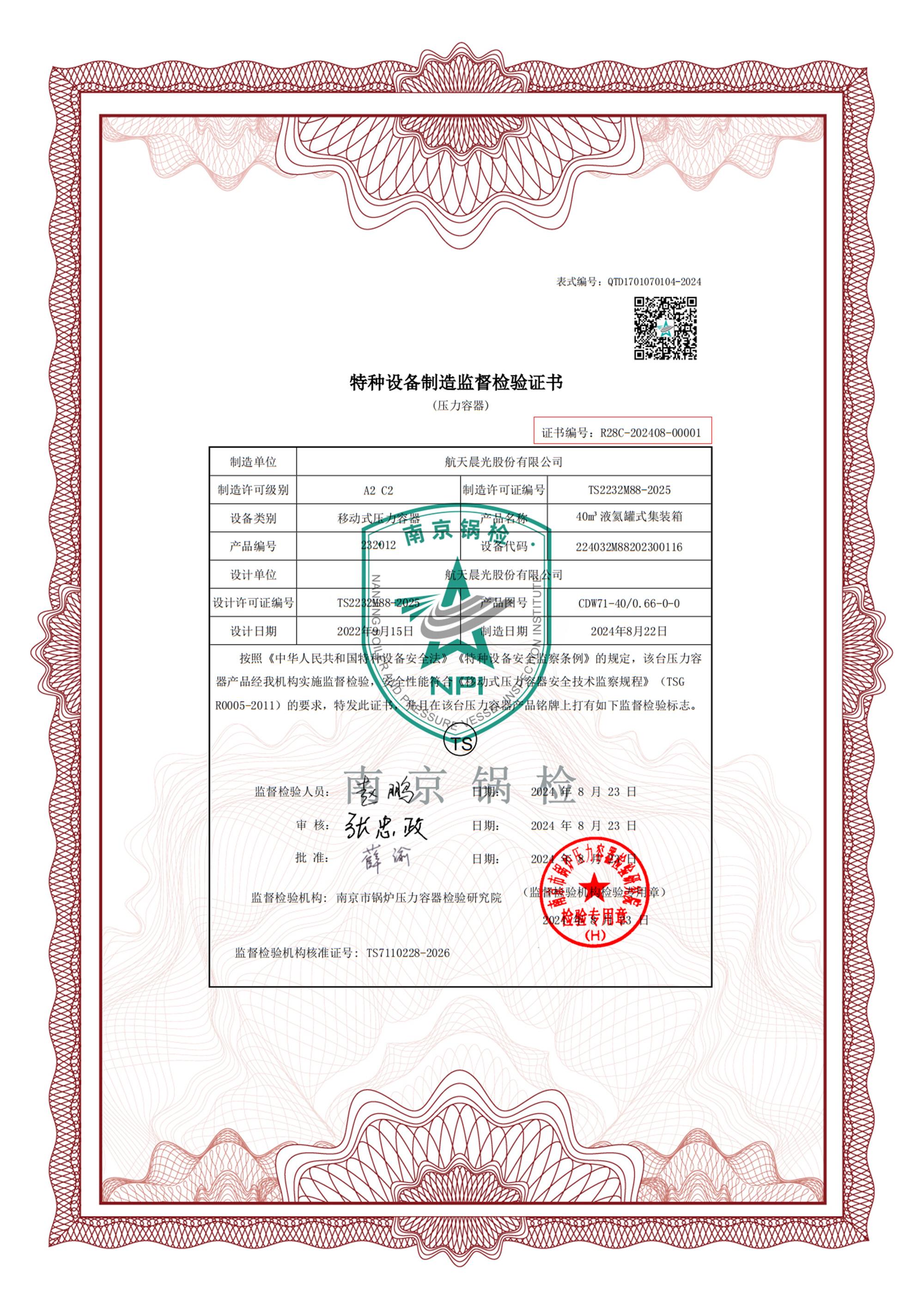 近日,公司設(shè)計(jì)制造的“40m3液氦罐式集裝箱”成功獲得南京市鍋爐壓力容器檢驗(yàn)研究院頒發(fā)的《特種設(shè)備制造監(jiān)督檢驗(yàn)證書》,這一成果標(biāo)志著公司邁向高端裝備制造領(lǐng)域的技術(shù)實(shí)力再獲權(quán)威認(rèn)證,解決了長期以來只能以“租借國外液氦罐箱”的方式進(jìn)口液氦的“卡脖子”難題。